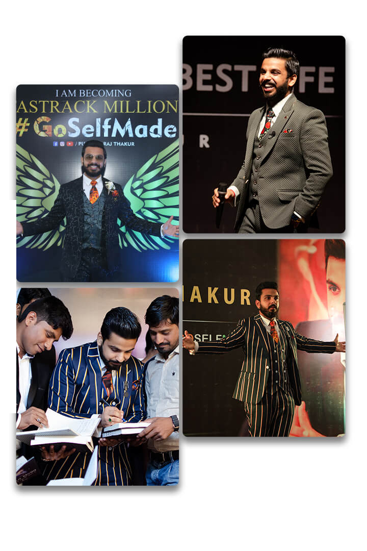 Master of Leadership Psychology, Pushkar Raj Thakur is one of the most Influential Motivational Speaker & Business Development Coach in India. Inspiring millions of people & helping them Build their Dreams, he is regarded as the Youth Icon and the Change Expert.He has been featured into several publications such as The Times of India, Hindustan Times, etc.
